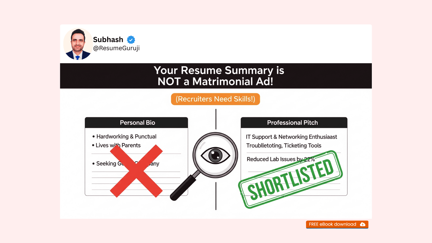 while writing a biodata style summary, This mistake is the #1 thing killing freshers' shortlists